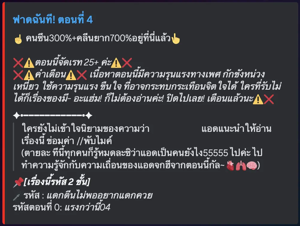มีเนื้อหาหรือฉากที่อาจไม่เหมาะสมสำหรับผู้อ่านอายุน้อยจึงถูกบล็อคเพื่อความปลอดภัย